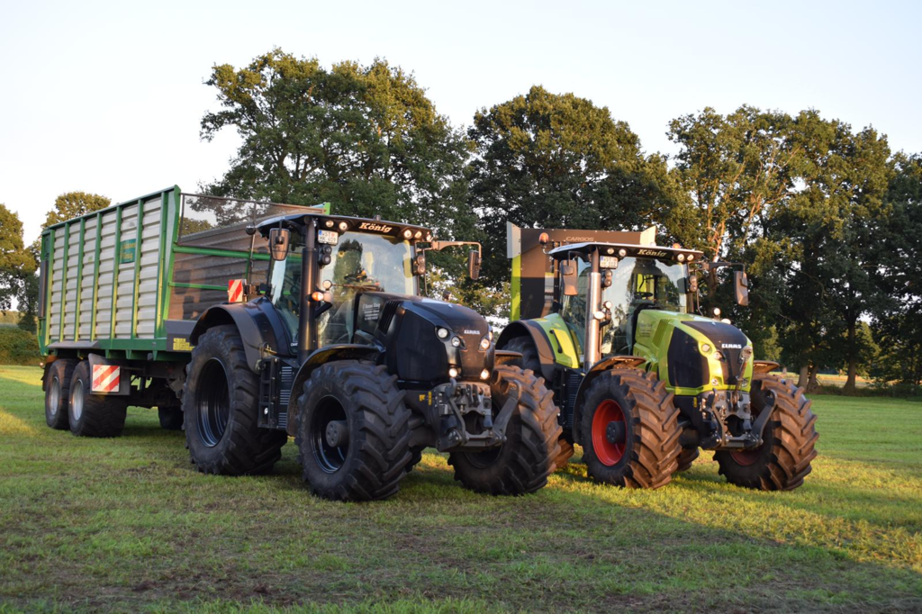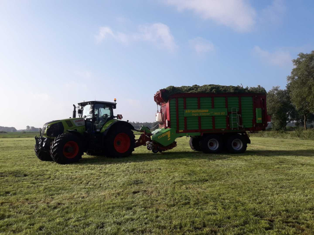 Wir fahren für Sie mit vier Superkurzschnittladewagen GigaVitesse der Firma Strautmann mit bodenschonenden Breitreifen, Dosierwalzen und 40m³ Fassungsvermögen sowie 12 Tonnen schweren Walzschleppern für eine optimale Verdichtung der Silage. Auf Wunsch ist eine Zuführung von flüssigem Siliermittel möglich.